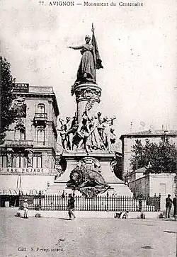 | "The monument celebrating the centenary of Avignon's absorption into the French Empire-The "Monument du Centenaire" | Avignon | 1891 | Below is an old post card showing the monument. Charpentier carried out the substantial sculptural work involved.