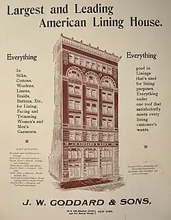 Advertisement for J.W.Goddard & Sons, New York