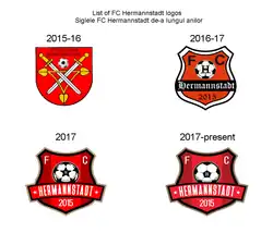 Immediately after the 2015 founding, the club was enrolled in the Liga IV. It finished first in the league table and subsequently qualified for the Liga III promotion play-offs.[3] Hermannstadt won the phase without major difficulties, after 6–1 on aggregate against the champion of Gorj County, Gilortul Târgu Cărbunești.[4] Sibienii were also winners of the Liga III – Seria V in the next season and promoted to the Liga II, the second level of the Romanian league system.[5]