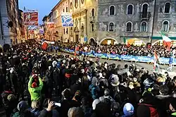 The organizing committee for the 2009 championships in Liberec met in Oslo with the organizing committee of the 2011 championships on 20 April 2009 to discuss lessons learned. In the presentation was a comprehensive and frank analysis of the critical areas of Liberec's organization. Key success factors were detailed and lessons learned were elaborated, including several recommendations to both the 2011 championships and the organizing committee for the 2013 championships. Besides the 2009, 2011, and 2013 organizing committees in attendance, other attendees included the Norwegian Ski Federation, the European Broadcasting Union television, FIS, and the APF marketing partners.[11] A second organizing committee meeting took place in Val di Fiemme on 3 June 2009 headed by Piero De Godenz and Angelo Corradini.[12] In discussion was great strides in facility upgrades in time for the 2012 test events, along with legacy usage after the championships.[12] Also included were marketing campaigns with EBU and with support from the local area.[12] At a meeting in Cavalese on 26 October 2009, the organizing committee presented a detailed chart where each person listed had specific responsibilities.[13] Most of coordinating group members also participated in the 1991 and 2003 championships.[13] In January 2010, the city hosted the last two stages in the 2009–10 Tour de Ski, the 100th FIS World Cup staged by the Coordinating Group.[13] Marketing and communications presented the event's mission and vision while the technical side involved sport structure, roads, and media broadcasting.[13]