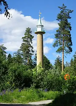 During World War II, approximately 1,200 airspace surveillance towers were built in Sweden,[2] most of them wooden.[5] Only a few remain preserved, and the tower in Fagersta is unique in that it was designed by an architect.[2] The use of expensive building materials is also unusual.[3] It is also the only such tower that Cyrillus Johansson designed.[6]