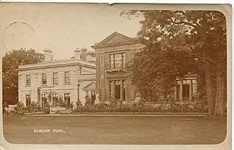 Sir Samuel Raymond Jarvis sold the 450-acre Fair Oak Park estate to James Edward Bradshaw by auction in 1845.[7] Bradshaw's family history could be traced back to Sir John de Bradshaw, whom William the Conqueror granted lands to. As well as Fair Oak Park, James Bradshaw owned Darcy Lever Hall in Lancashire.[8] He was appointed Sheriff of the County of Southampton for the year 1856.[9][10] In a magazine of March 1874, a J B Bradshaw of Fair Oak Park said that he "does not hunt now, but has the best covert in the hunt for foxes, is a capital coachman, and can put four horses together better than most people."[11] The property was described in 1878 as "a large and handsome brick mansion, with extensive and well-wooded pleasure grounds".[12]
