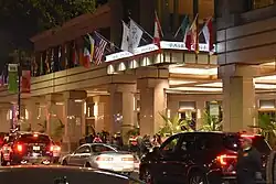 The hotel stands on the site of San Jose's first Chinese enclave, the Market Street Chinatown, which existed from 1866 until its destruction by arson in 1887. A plaque on the hotel's exterior commemorates the racist attack.[6] The hotel was planned in the 1980s as part of an urban renewal project funded by the Redevelopment Agency of San Jose, which also included the Silicon Valley Financial Center and Circle of Palms Plaza; it was developed by The Swig Company.[7][8] Construction led to a hasty salvage excavation of artifacts from the former Chinatown.[9]