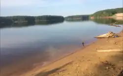 Falls Lake is a 12,410 acre (50 km2) reservoir located in Durham, Wake, and Granville counties in North Carolina, United States. It extends 28 miles (45 km) up the Neuse River to its source at the confluence of the Eno, Little, and Flat rivers, and has a shoreline of 175 miles (280 km).