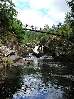 Rogie Falls (Gaelic: Eas Rothagaidh) are a series of waterfalls on the Black Water, a river in Ross-shire in the Highlands of Scotland. The falls are about 2 kilometres (1.2 mi) northwest of the village of Contin, next to the A835 road.[1] They are a popular tourist attraction, with several forest walks.