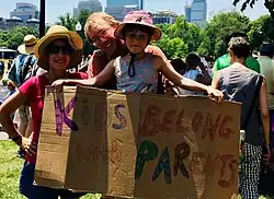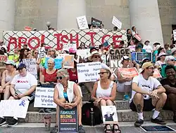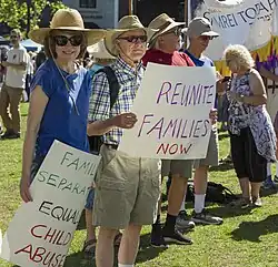 Many of those protesting in June 2018 had participated in previous anti-Trump protests and actions, while others were new to immigration activism, with parents who felt called into action based on the reported stories of separations.[8] Protesters at the events in June 2018 participated in both major cities and also more rural regions like Appalachia and Wyoming. Protests were also held internationally.[4] Some protesters compared the detainment of children by the U.S. government to the Nazi concentration camps.[9][10]