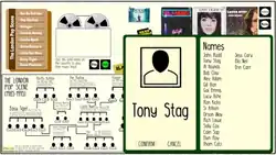 Family is a 2020 puzzle video game by Sheinman Games, the studio of independent British developer Tim Sheinman. Described by the creator as a "unique detective game of musical genealogy",[1] players piece together information from radio interviews, music and written notes to identify a series of band members in a fictitious music scene, the 'London Pop Scene', displayed on an incomplete family tree from 1985 to 1995. The game contains short recordings from each fictional artist evocative of real-world counterparts in 80s and 90s indie and alternative music. Following release, Family received positive reviews from critics, with praise directed towards the quality and verisimilitude of the game's music and the construction of its narrative through its puzzle gameplay mechanics. Sheinman published a follow-up title with a similar premise, Rivals, in late 2020.