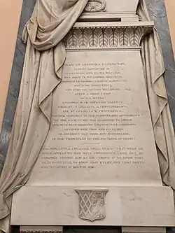 The newly married couple honeymooned at Brownlow Hill for only three weeks before Fanny fell ill, her stomach pains and heart palpitations requiring her to be looked after at home by family.[9] She died three weeks later on 8 August 1836.[12]