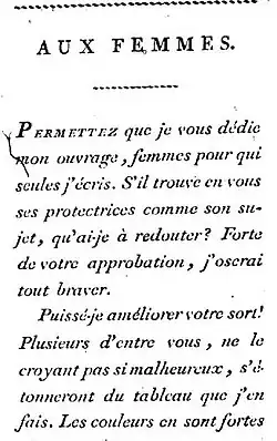 - ^ Fraisse, Geneviève (1993). ""Opinions de Femmes, de la veille au lendemain de la Révolution française (M.-A. Gacon-Dufour, O. de Gouges, C.De Salm, A.Clément-Hémery, F.Raoul)", réédition des textes et préface de Geneviève Fraisse". academia.edu (in French). p. 319. Retrieved 24 January 2023.