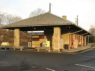 ![]() The 1914 station depot of the Delaware, Lackawanna and Western Railroad at Far Hills. | |||||||||||||
