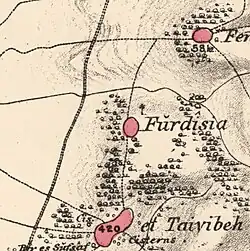 In 1838, Furdisia was noted as a village in the Beni Sa'ab area, west of Nablus.[13] In 1870, Victor Guérin noted that the village was situated on a hill.[14]