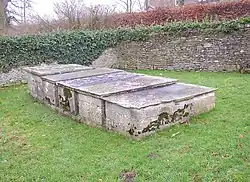 In the graveyard to the northeast of the meeting house are five joined chest tombs to the Myers family dated between 1687 and 1737. They are designated as a Grade II listed building.[6] This style of tomb is unusual in Quaker burial grounds as it was considered to be ostentatious and was later discouraged by the movement.[5]