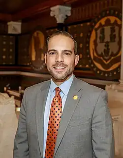 Farley Santos is an American politician. He is a Democratic member of the Connecticut House of Representatives serving in the 109th district since 2022.[1] In December, 2023 Santos was appointed, in addition to his elected office, by Roberto L. Alves, Mayor of Danbury, Connecticut,[2] as Community Relations and Constituent Services Advisor. In June of 2024, he was elevated to a different role in Mayor Alves' office. He currently serves as Economic and Community Development Advisor.[3]
