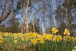 Over 40,000 people visit the dale in the springtime to walk along the River Dove and see the daffodils.[15] The variety of daffodil that grows wild in the valley, has shorter stems than the cultivated variety[16] and are believed to have been planted by monks in medieval times.[17][18] The daffodils are also known as Lent Lilies in Farndale and they usually appear around Lent.[19][20]