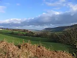 Farndale is a valley within the North York Moors, it is surrounded by some of the wildest moorland in England. The dale is sandwiched between Bransdale to the west, Rosedale to the east and Westerdale to the north. To the north-east sits Blakey Ridge at over 1,312 feet (400 m) above sea level, and to the north-west, Cockayne Ridge reaching up to 1,490 feet (454 m) above sea level is one of the highest points of the North York Moors. The southern boundary of the Farndale Parishes are along Harland Beck and Shortsha Beck (across Lowna Lund),[9] although the Gillamoor to Hutton-le-Hole road is considered as the boundary for all other purposes, south of this the dale continues but changes its name to Douthwaitedale, though the Tabular Hills until it reaches Keldhome then Kirkby Mills just east of Kirkbymoorside.