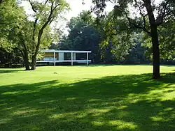 Nonetheless, the Farnsworth House has continued to receive critical acclaim as a masterpiece of the modernist style, and Mies went on to receive the Presidential Medal of Freedom for his contribution to American architecture and culture. Architect and critic Philip Johnson said the design inspired that of his own Glass House in New Canaan, Connecticut, in 1947.[28] In celebration of the 2018 Illinois Bicentennial, the Farnsworth House was selected as one of the Illinois 200 great places[29] by the American Institute of Architects Illinois component (AIA Illinois) and was recognized by USA Today Travel magazine, as one of AIA Illinois' selections for Illinois "25 Must See Buildings".[30] In 2021, The New York Times named it as one of the 25 most significant works of architecture since World War II.[31]