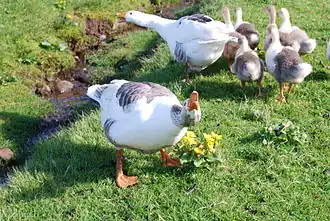 The Faroese goose (Faroese: føroyska gásin) is probably the oldest form of tame goose in Europe and possibly the direct descendants of the tame geese that the Landnám folk brought from Scandinavia and the British Isles.
