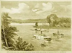 Immediately after the Civil War, Dutch Gap Canal remained unusable because Henry Cox, who still owned Farrar's Island, had filled in the northern end of the canal with a causeway to access the island. However, in 1870 a flood washed away the causeway and opened the canal to development.[31] Improvements to the canal were not made until after 1871,[32] and ongoing deepening and widening under the guidance of the Army Corps of Engineers continued at least through the decade's end.[33] Richard Friend, who inherited the property from Cox in 1888, filed suit against the United States Government to recover his claimed losses due to the improvement of the canal, but lost his case.[34]