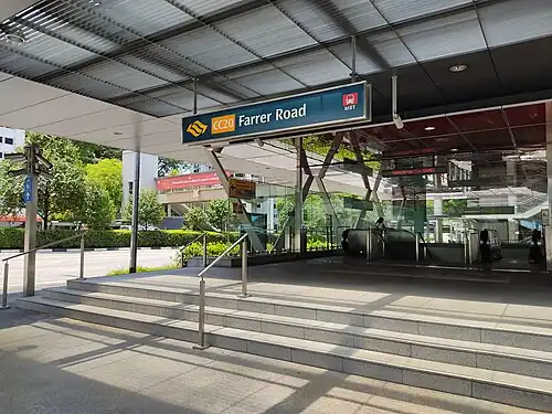 Farrer Road MRT station is an underground Mass Rapid Transit (MRT) station on the Circle line, located along the boundary of Farrer Court (Bukit Timah) and Tyersall (Tanglin) planning areas, Singapore. It is built underneath Farrer Road, the thoroughfare which gives the station its name, and is located near the Farrer Gardens Estate.