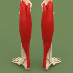 Each compartment contains connective tissue, nerves and blood vessels. The septa are formed from the fascia which is made up of a strong type of connective tissue. The fascia also separates the skeletal muscles from the subcutaneous tissue.[2] Due to the great pressure placed on the leg, from the column of blood from the heart to the feet, the fascia is very thick in order to support the leg muscles.[3] The thickness of the fascia can give problems when any inflammation present in the leg has little room to expand into. Blood vessels and nerves can also be affected by the pressure caused by any swelling in the leg. If the pressure becomes great enough, blood flow to the muscle can be blocked, leading to a condition known as compartment syndrome. Severe damage to the nerve and blood vessels around a muscle can cause the muscle to die and amputation might be necessary.[4]