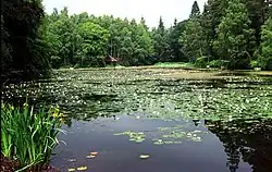 It is situated on Loch Faskally's north shore, while the forest itself contains Loch Dunmore.[6] When acquired by the Forestry Commission in 1953, it covered an area of about 55 hectares (140 acres), but in the present day measures 25 hectares (62 acres) after undergoing a "transformation into an irregular structure".[1] The Faskally House is situated within this forest.[7] The River Garry flows below the lawns of this house.[3][8]