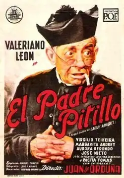 Father Cigarette (Spanish: El padre Pitillo) is a 1955 Spanish-Portuguese comedy film directed by Juan de Orduña and starring Valeriano León, Virgílio Teixeira and Margarita Andrey.[1] It was based on a play by Carlos Arniches, which had previously been turned into a 1946 Chilean film of the same title.