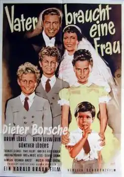 Father Needs a Wife (German: Vater braucht eine Frau) is a 1952 West German comedy film directed by Harald Braun and starring Dieter Borsche, Ruth Leuwerik and Bruni Löbel.[1] It was made at the Bavaria Studios in Munich and on location around Lautersee and Mittenwald. The film's sets were designed by the art directors Hans Sohnle and Fritz Lück.