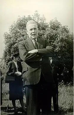 Ben Chifley shortly after planting a tree at the Prime Ministers' Corridor of Oakes, Faulconbridge, 1947