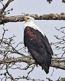 Eagles are widespread over the country. Different species inhabit different habitats. The African fish eagle is found wherever there are large bodies of water, and takes mainly fish and occasionally other vertebrates. The martial eagle is found in savanna, while Verreaux's eagle is found in areas with rocky terrain and mountains. The Verreaux's eagle is being given attention by conservation authorities as there has been noticeable population decline in some areas.[12][13] It is an important predator of the rock hyrax. The crowned eagle is a forest species, and takes monkeys and duikers. There are myriad species of hawk found across the country; examples are harriers, sparrowhawks, the African harrier hawk, Buteo species known as buzzards (the jackal buzzard), and kites, such the black-winged kite.