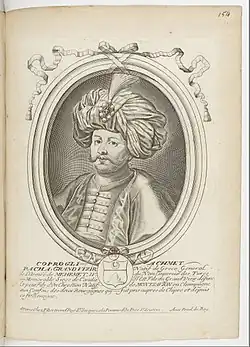 Köprülüzade Fazıl Ahmed Pasha (Ottoman Turkish: كپرولى زاده فاضل احمد پاشا, Turkish: Köprülü Fazıl Ahmet Paşa; Albanian: Fazlli Ahmed Pashë Kypriljoti; 1635 – 3 November 1676) was an Ottoman nobleman and statesman, who belonged to the renowned Köprülü family of Albanian origin, which produced six grand viziers of the Ottoman Empire.[3]