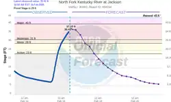 North Fork Kentucky River gauge at Jackson, Kentucky. Water crested at 37.1 feet.