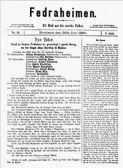 - ^ Henriksen, Petter (ed.). "Fedraheimen". Store norske leksikon (in Norwegian). Oslo: Kunnskapsforlaget. Retrieved 10 May 2010.