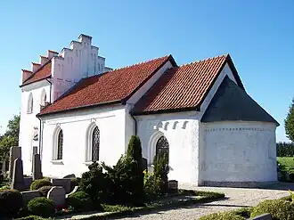 Felestad Church is an early Romanesque brick church, erected on a base of fieldstone, sometime between 1180 and 1220. The church was rebuilt during the 15th or 16th century, when an original wooden ceiling was replaced with a vaulted ceiling. The tower, as well as (probably) the present windows, were added in the 19th century during a renovation led by Carl Georg Brunius. The tower replaced an earlier tower which had collapsed in the 17th century. A church porch has also existed but was removed during the 17th century.[1]