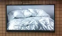 One of his most recognizable works, "Untitled" (1991), a billboard work which features a black-and-white photograph of an unmade bed, was installed in twenty-four outdoor public locations all over New York City in 1992. Viewers would come upon the work unexpectedly while walking the streets in the Bronx, Brooklyn, Long Island City, and Manhattan. The billboards were installed in the same manner, scale, and location as existing commercial advertising billboards. The installation, Projects 34: Felix Gonzalez-Torres, was curated and organized by Anne Umland in her role as Curatorial Assistant at the Museum of Modern Art (MoMA).[71] The work is dated 1991, the same year as the death of his long-time partner, Ross Laycock, from AIDS-related illness.
