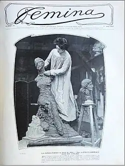 Leading journalists contributed articles, including women writers with a serious commitment to women's issues, among them being poet Jane Catulle-Mendès, and established novelists Gabrielle Réval, Jeanne Lapauze and Marcelle Tinayre. Amongst its male writers were allies of feminism: Marcel Prévost, Jules Claretie (director of the Comédie Francaise which staged several progressive plays about women), Maurice Donnay (who wrote the 1913 feminist play L’éclaireuses), Paul Margueritte (who supported divorce and the decriminalization of adultery), and literary critic Emile Faguet, sympathetic to women writers.[4] It profiled celebrated women, including those working in the professions; as an example of its contents and inclusion of female celebrities of the day, the May 1, 1903 issue entitled "Women Artists at the Salon of 1903", devoted three illustrated pages to Louise Abbéma, Louise Catherine Breslau, Camille Claudel, Maximilian Guyon, Louise Clément-Carpeaux (cover), Laure Coutan-Montorgueil, and Juana Romani.