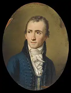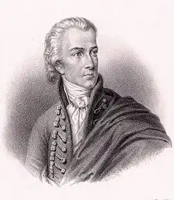 Ferenc Kazinczy (Hungarian: [ˈkɒzintsi ˈfɛrɛnt͡s]), (in older English: Francis Kazinczy,[1] October 27, 1759 – August 23, 1831) was a Hungarian author, poet, translator, neologist, an agent in the regeneration of the Hungarian language and literature at the turn of the 19th century.[2] Today his name is connected with the extensive Language Reform of the 19th century, when thousands of words were coined or revived, enabling the Hungarian language to keep up with scientific progress and become an official language of the nation in 1844. For his linguistic and literary works he is regarded as one of the cultural founders of the Hungarian Reform Era along with Dávid Baróti Szabó, Ferenc Verseghy, György Bessenyei, Mátyás Rát and János Kis.[3]