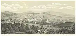 He wrote his first letters in December 1764 to his parents who lived in Alsóregmec at that time. In 1766 his aunt got sick, therefore they moved to Debrecen for three months for the healing treatment. Kazinczy studied during that time at the College of Debrecen.[6] After the death of his aunt he returned to his parents where he learnt Latin and German from a student of the College of Késmárk (today Kežmarok, Slovakia). His well educated and enlightened father, experiencing rare susceptibility, was delighted with his son, so he also taught him and communicated with him in Latin and German. Kazinczy continued his language studies in Késmárk in 1768 in a preparatory class.[7]
