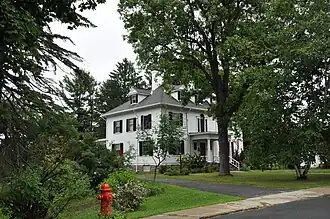 Designed by W. A. Gale, it was built in 1911 and is a 2+12-story, four-bay-wide, hipped roof Colonial Revival–style building with clapboard sheathing and a stone foundation. It features a three-bay-wide, one-story flat-roofed porch with Doric order columns. Also on the property are a contributing carriage house and playhouse.[2]