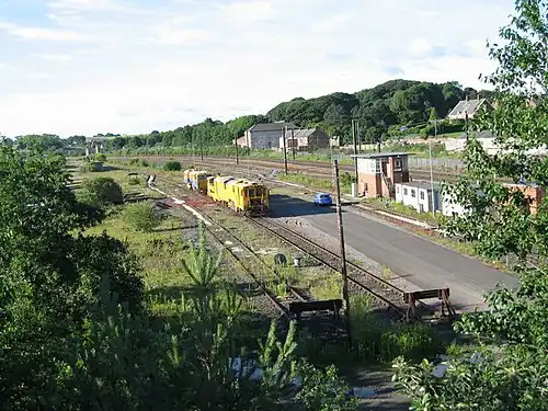 The service to Coxhoe along the truncated Sherburn branch was withdrawn by the NER as early as 1902 though the line remained open to goods traffic until 1966.[8] Passenger services on the Byers Green branch were withdrawn beyond Spennymoor on 4 December 1939 and ended completely on 31 March 1952. The other branch lines radiating from Ferryhill were progressively closed between the 1940s and 1950s[5] with the Leamside Line closing to local traffic on 28 July 1941,[8] the former Clarence Railway main line to Stockton losing passenger services on 31 March 1952 and passenger services on the former GNEC&HJR route to Hartlepool being withdrawn on 9 June of the same year.[5]