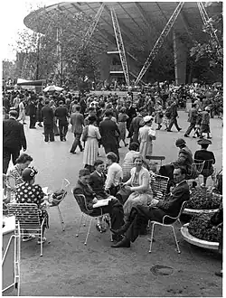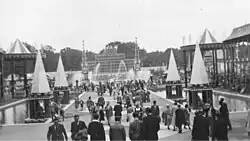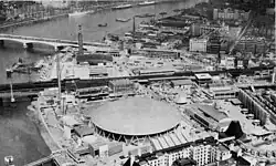 The first idea for an exhibition in 1951 came from the Royal Society of Arts in 1943, which considered that an international exhibition should be held to commemorate the centenary of the 1851 Great Exhibition.[7] In 1945, the government appointed a committee under Lord Ramsden to consider how exhibitions and fairs could promote exports.[7] When the committee reported a year later, it was decided not to continue with the idea of an international exhibition because of its cost at a time when reconstruction was a high priority.[7] Herbert Morrison took charge for the Labour government and decided instead to hold a series of displays about the arts, architecture, science, technology and industrial design,[8] under the title "Festival of Britain 1951".[9] Morrison insisted there be no politics, explicit or implicit. As a result, Labour-sponsored programmes such as nationalisation, universal health care and working-class housing were excluded; instead, what was allowed was town planning, scientific progress, and all sorts of traditional and modern arts and crafts.[10]