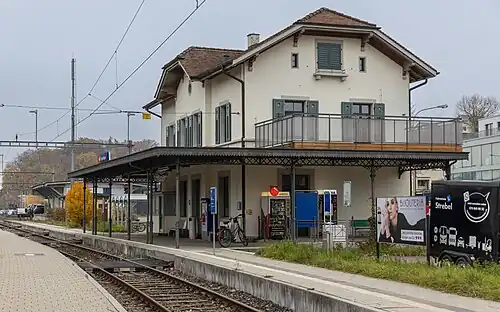 Feuerthalen railway station (German: Bahnhof Feuerthalen) is a railway station in Feuerthalen, in the Swiss canton of Zurich. It is an intermediate stop on the Lake Line and is served as a request stop by local trains only.
