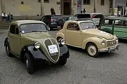 The Fiat 500, commonly known as "Topolino"[4] (pronounced [topoˈliːno]), is an Italian city car produced and manufactured by Fiat from 1936 to 1955.