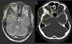 15. ^ Pons Escoda, Albert; Naval Baudin, Pablo; Mora, Paloma; Cos, Mònica; Hernandez Gañan, Javier; Narváez, José A.; Aguilera, Carles; Majós, Carles (2020-02-13). "Imaging of skull vault tumors in adults". Insights into Imaging. 11 (1): 23. doi:10.1186/s13244-019-0820-9. ISSN 1869-4101. PMC 7018895. PMID 32056014.