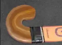 The next development was a hook with a toe with an inner edge that sloped away from the handle by approximately 30° (a 60° angle to the ground or a 150° 'upturn'. The 'toe height' was 75 mm. (Modern versions Fig. 2 vary between 70 mm and 75 mm. in toe height.) The horizontal length of the head was based on the length of the 'standard' one-piece short-head stick, approximately 110 mm. and modern versions seem to vary between 110 mm and 115 mm. The mid-90s saw the introduction of the more 'open' hooks Fig. 3, some at 45° and a significant increase in horizontal head length, some as much as 120 mm.