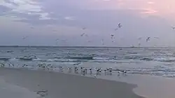 The local chapter of the National Audubon Society has recorded 104 different species of birds on Figure Eight. Most live in Rich Inlet, generally considered the southernmost nesting area for the critically endangered Great Lakes piping plover.[53] In 2015, approximately 800 Least Tern nested on the northern section of the island, making it the largest Least Tern colony in the state and one of the largest on the Eastern seaboard. Other birds that nested there include American Oystercatchers, Common Terns, Black Skimmers, Piping Plovers, Wilson's Plovers and Willets.[49] Savannah Sparrows, Atlantic Plovers, Greater Yellowlegs, and pelicans have been found in Mason Inlet to the south.[50]