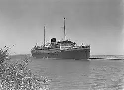 The order for a third ocean liner, the Edam, came about by an accident. In August 1881 a steamship Edam had been launched for the NASM in Dumbarton. On 1 January 1882 this ship left Rotterdam for New-York, and suffered so much damage in a storm, that she had to be saved by the Napier of captain Anderson. The Edam re-entered service, but on 21 September 1882 she was hit midships by SS Lepanto and sank in 20 minutes.[62] In October 1882 the NASM then contracted with Fijenoord for a new Edam of comparable dimensions, but made of steel.[63] The new Edam was launched on 30 August 1883.