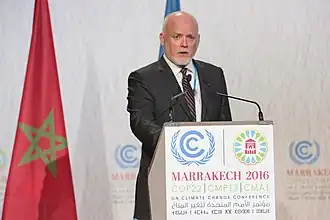 In 2016, Fijian diplomat Peter Thomson was elected President of the Seventy-first session of the United Nations General Assembly, becoming the first Pacific Islander to hold the post. He told the General Assembly: "We bring special perspectives on climate change and on oceans issues and you can expect me to be vocal on those in the 71st session".[17] Fiji presided the 2017 United Nations Climate Change Conference (COP23), which took place in Bonn for practical reasons but under Fijian leadership. Under Fiji's impetus, it launched the "Talanoa Dialogue" to facilitate the implementation of efforts to reduce the emissions of greenhouse gases.[18]