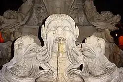 - Fontana della Rotonda (1711). The fountain setting for the Egyptian obelisk that faces the Pantheon was commissioned by the Albani pope Clement XI; Barigioni was commissioned to re-erect an Egyptian obelisk (the Obelisco Macuteo) in the place of the central vase of Giacomo Della Porta's fountain (1575) in the centre of Piazza della Rotonda. Luigi Amici carved the four dolphins at the base of the pedestal (illustration). The ensemble was adapted in 1880.[1]