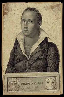 Filippo Galli (1783 – 3 June 1853, in Paris) was an Italian opera singer who began his career as a tenor in 1801 but went on to become one of the most acclaimed basses of the bel canto era, with a voice known for its wide range, extreme agility, and expressivity, and a remarkable gift for acting.