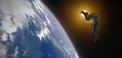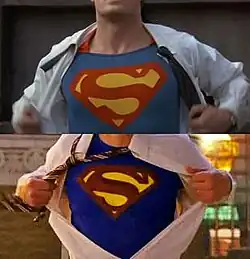 ![]() The final shot of the episode (lower) was modeled after iconic scenes from the Christopher Reeve Superman films (upper). | |